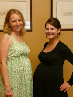 On another note, check out the picture above! Angie and I posed for the camera showing off our baby bumps. Whoa, I did not realize that I look THAT big. Doesn't the camera put on 10 pounds? I sure hope so...haha.